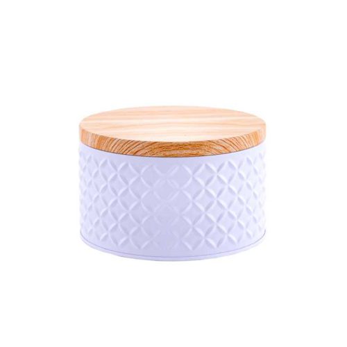 Lata tapa tipo madera base blanca.