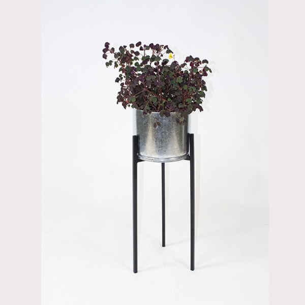 Maceta Alta redonda con pie en metal de diseño actual. Pie de diseño en color Negro con maceta redonda de diám 20 x alto 17cm. Modelo: Maceta alta redonda Tamaño: GDE Color: pie Negro con maceta en zinc