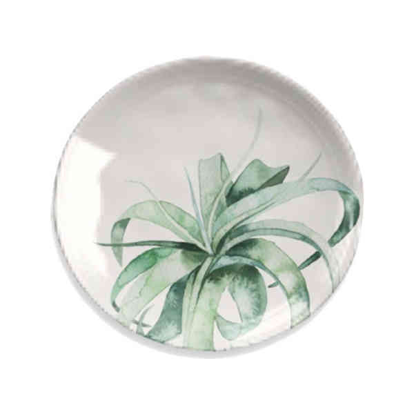 Plato Pequeño redondo: 16,5cm Material: Melamina Colores: Melamina con brillo en el frente, y opaca al reverso, base Blanca con flores en rosas y verdes.