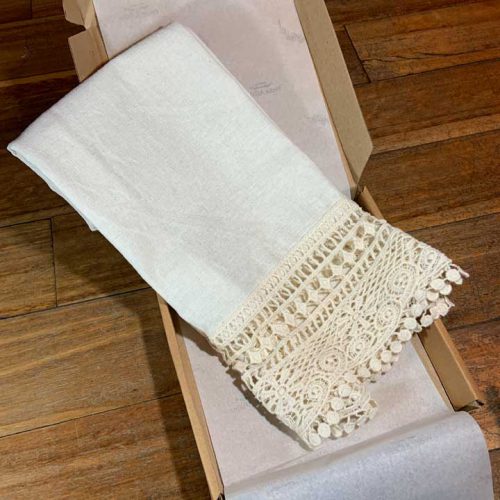 Toalla guest Lino Tiza con Puntilla Cruda Paño Amsterdam Malva